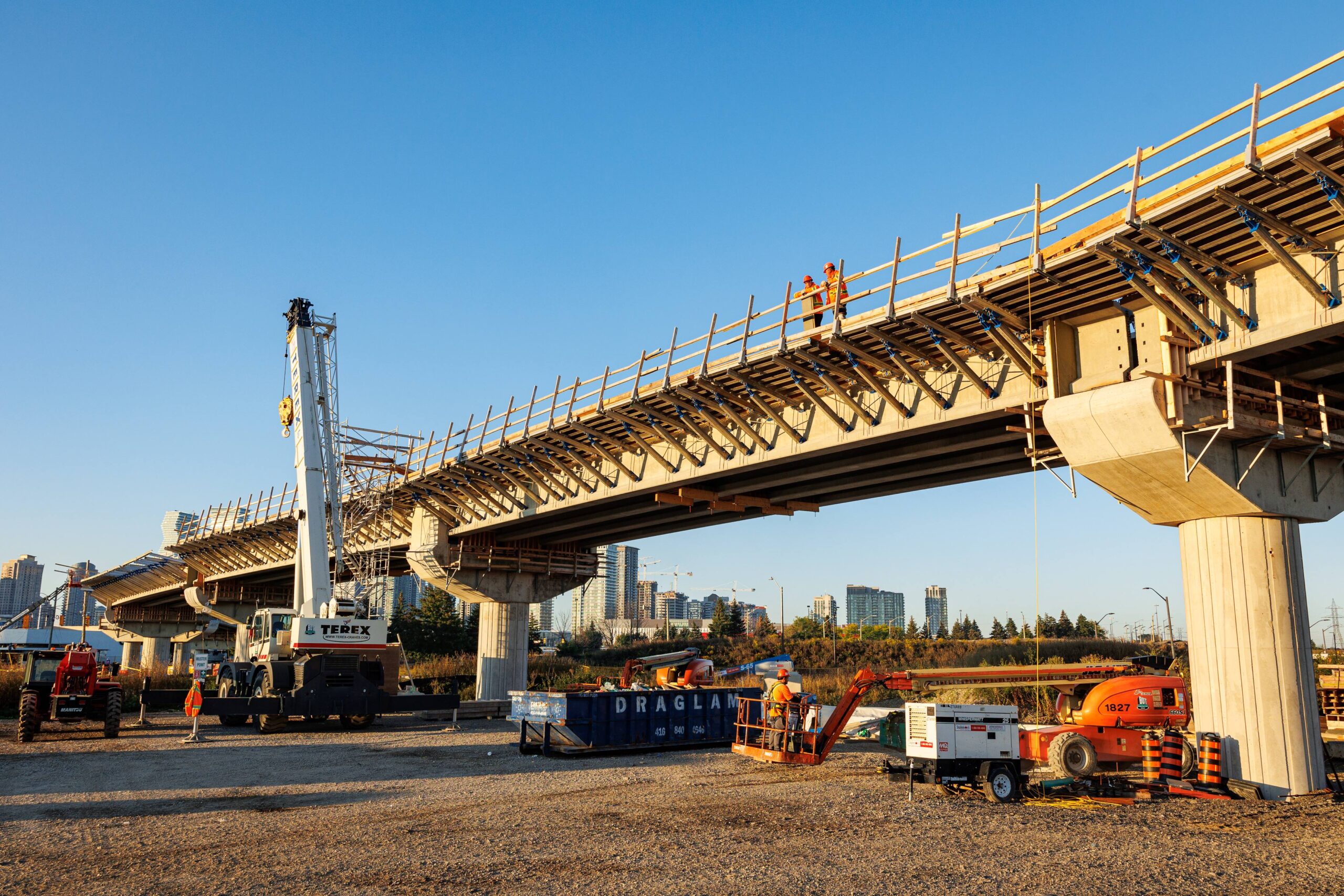 Our completed works include Ontario’s first cable-stayed bridge over the Nipigon River, the GO Transit rail bridge over the Humber River at Weston, major expansions of 400-series highways across Ontario, freeway to freeway interchanges,  major arterial road expansions and interchanges,  road/rail grade separations, access roads and structures for Terminals 1, 2 and 3 at Pearson International Airport, and remote access roads for the Le Grande hydro electric facility at James Bay.